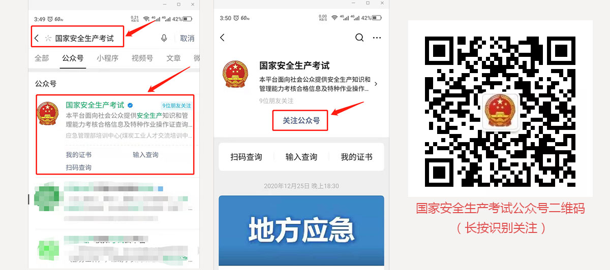 獲取新版證書的電子證書可通過微信公眾號“國家安全生產(chǎn)考試”或應(yīng)急管理部官網(wǎng)兩種方式查詢下載。